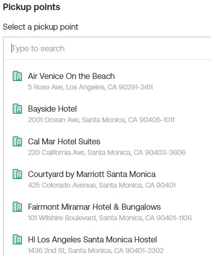 Pickup times vary based on hotel you are located. –Marina Del Rey Hotels are picked up 40 minutes before tour start time. –Venice Beach Hotels pickup 30 minutes before tour start time. –Local Santa Monica Hotels are picked up roughly 15 minutes before tour start time. Please call us with any questions.